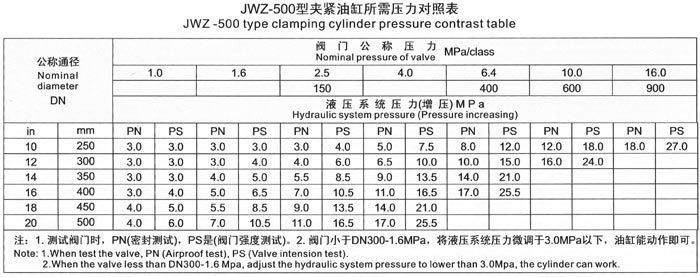 The test range of valve nominal diameter and nominal pressure for JWZ-500 model